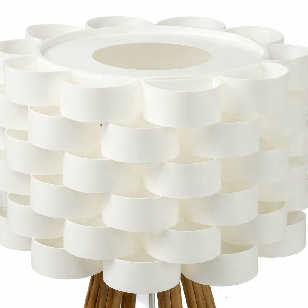 La lampe “Moki” est un incontournable de chez Atmosphera, c’est une lampe à poser originale en papier (doublé plastique) et son pied multiple en bambou. Elle ira très bien dans salon, sur un buffet, ou meuble TV.