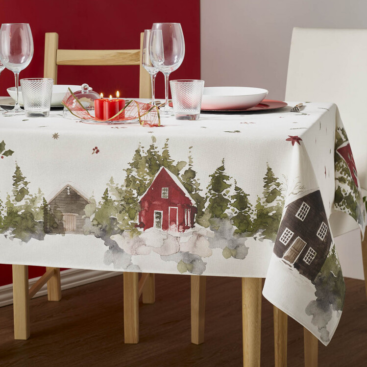 Habillez votre table pour toute occasion avec notre nappe anti-taches POINSETIA, faite en 100% coton. Sa fabrication espagnole est exemplaire,
